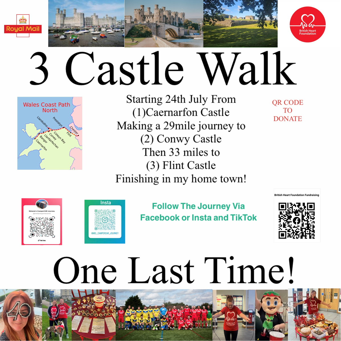 Starting on 24th July I will be taking on an epic 3 Castle Walk! Starting at Caernarfon Castle, making my way 29 miles to Conwy Castle then the longest leg of 33 miles to Flint Castle.